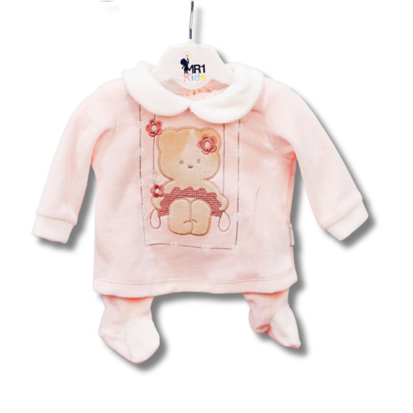 אוברול קטיפה לתינוקת - עיצוב דובי מתוק